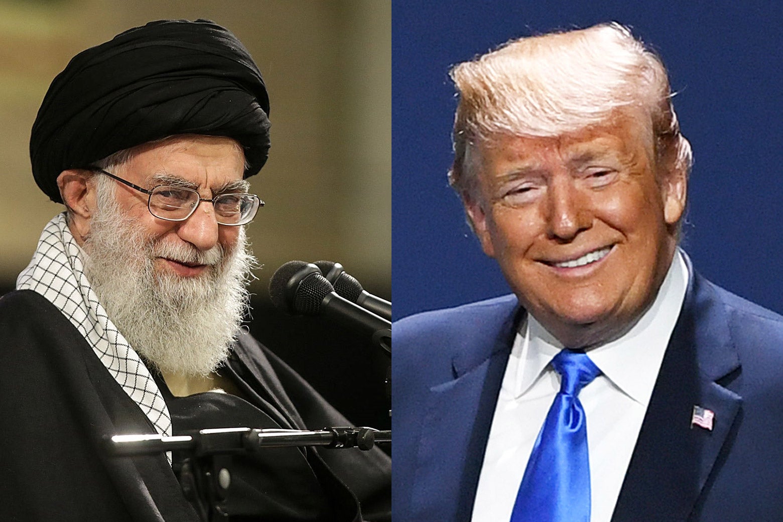 Photo illustration by Slate. Photos by Iran’s Religious Leader Press Office/Handout/Anadolu Agency/Getty Images and Ethan Miller/Getty Images.